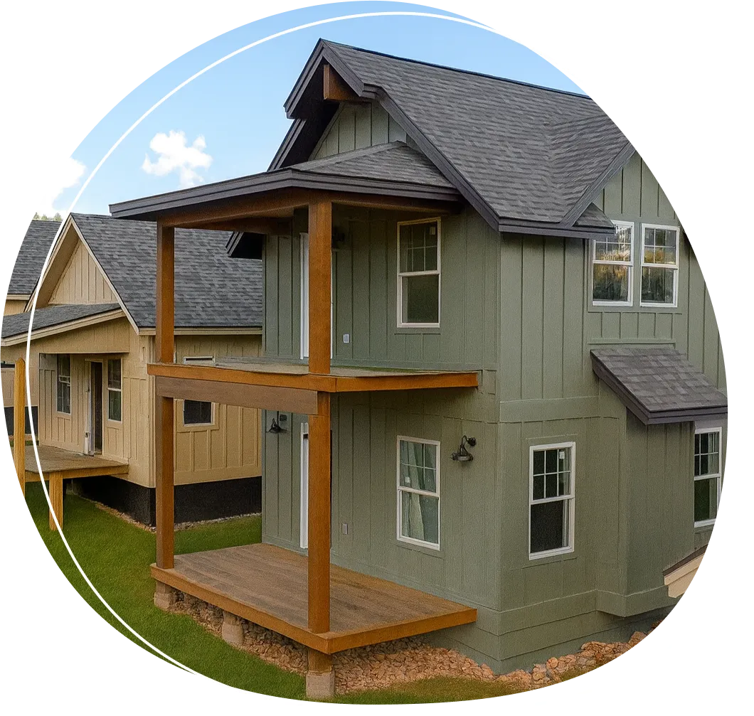 Haven 1 is a two-story home with a welcoming front porch and incredible views.